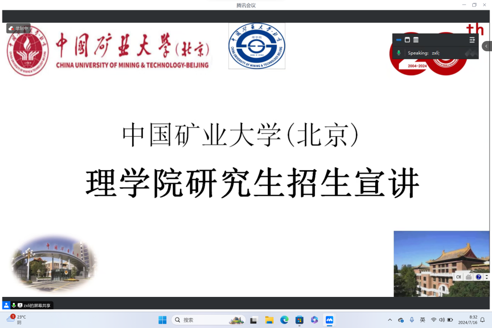 本届夏令营邀请了不同学科方向的优秀研究生代表分享学业规划及经验,从广大学生感兴趣的话题和切身体会出发为营员提供解答和帮助。2021级硕士杨圣开分享了研究方向的选择,硕博连读的申请,论文的发表等经验。2021级硕士王雨竹同学的毕业去向是南京大学读博,分享了选择读博和申请博士的心路历程。2021级硕士研究生秦建峰的毕业去向为首都师范大学附属中学朝阳学校,他分享了教师岗位的求职经验和雷竞技官网的平台和优势。2022级在读硕士李瑞琳,分享了其作为研会主席、研究生教秘助理等在校的丰富的科研生活经历。2020级硕士李赫同学分享了国外博士申请,研究方向选择,以及矿大学习和生活中的趣事。