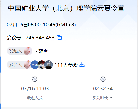 夏令营综合面试于7月16日下午13:00开始。通过4组腾讯会议分会场同时在线对参加夏令营的营员们进行专业素质、综合能力和外语水平分组综合面试考核。